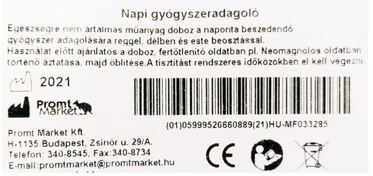 A gyógyszeradagoló tökéletes választás mindazok számára, akik szeretnék rendszerezni gyógyszereiket. Kompakt kialakítása lehetővé teszi, hogy bárhol elférjen, így mindig kéznél van. Segítségével elkerülhetjük a gyógyszerek elfelejtését