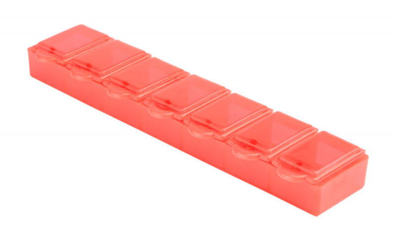 Műanyag, heti gyógyszeradagoló 7 rekesszel.